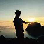 The villa is equipped with an electric kettle, a fridge, and kitchenware for self-catering in an outdoor dining area. The closest airport is Leknes, located 5 km from the Vestvagoy property.